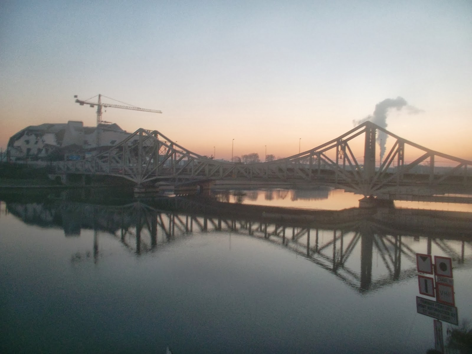 Descente sur les bords de Saone à Confluence au petit matin.